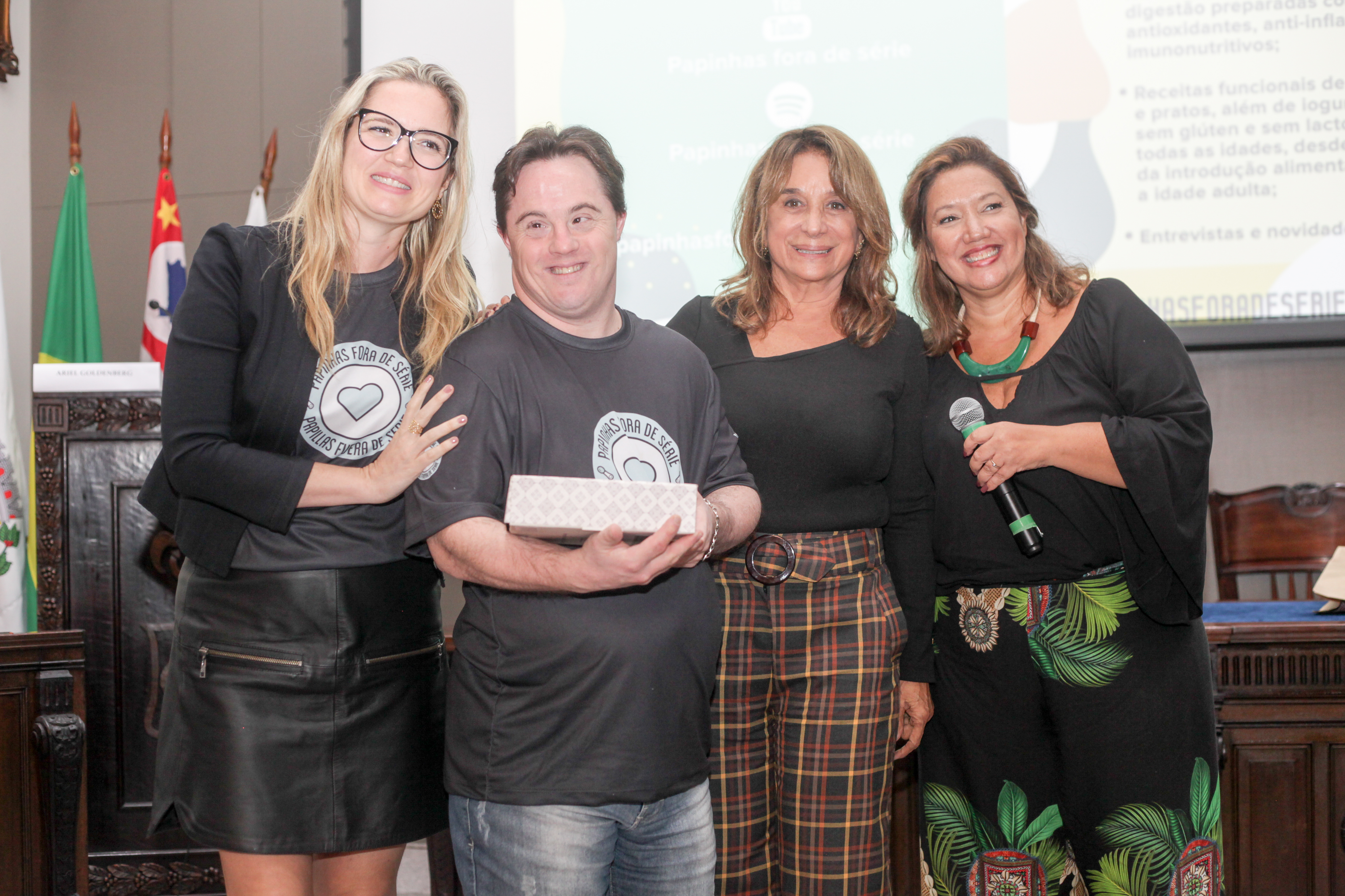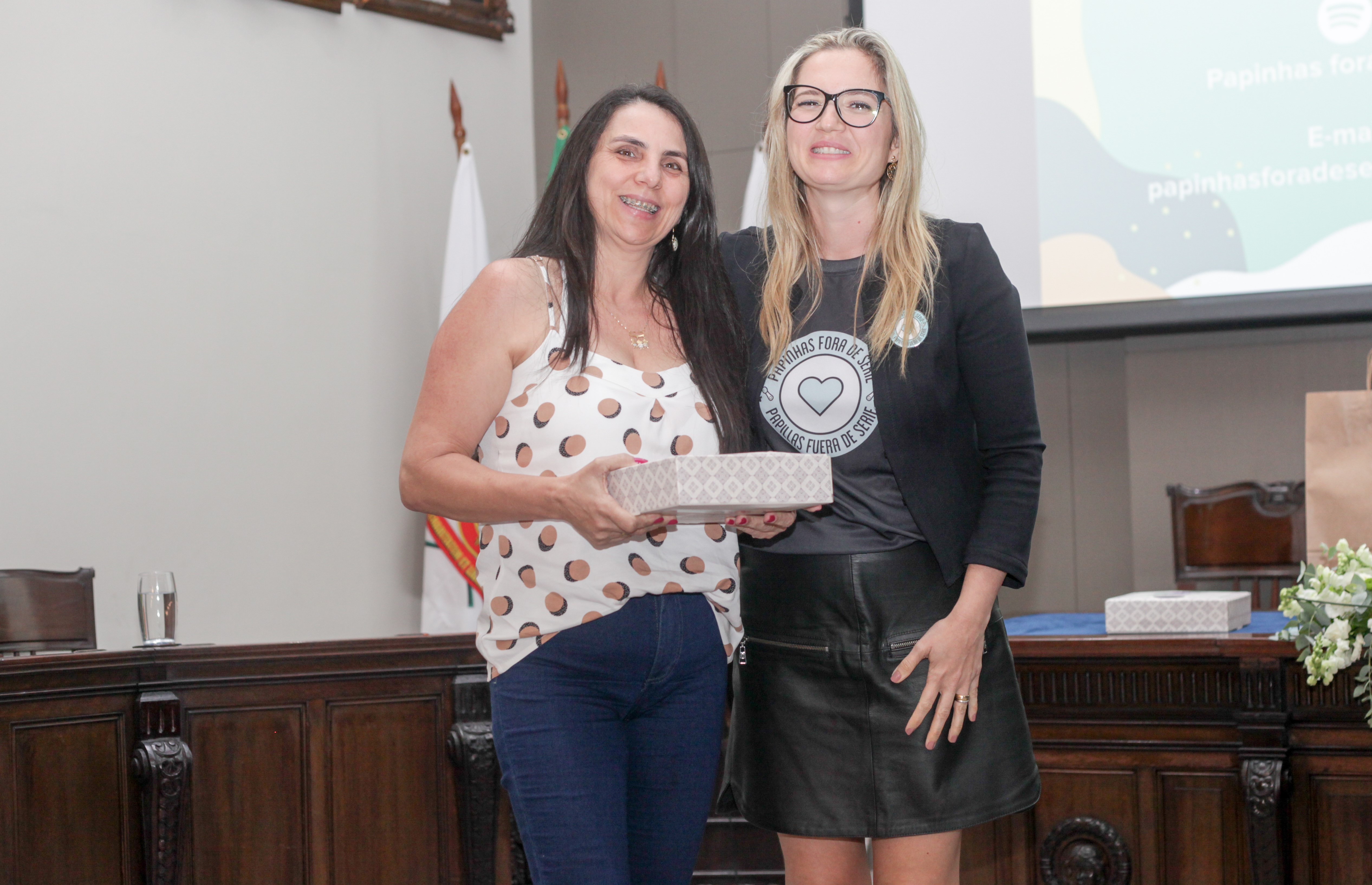 Todos os palestrantes ganharam lembrancinhas da Prefeitura de Santos