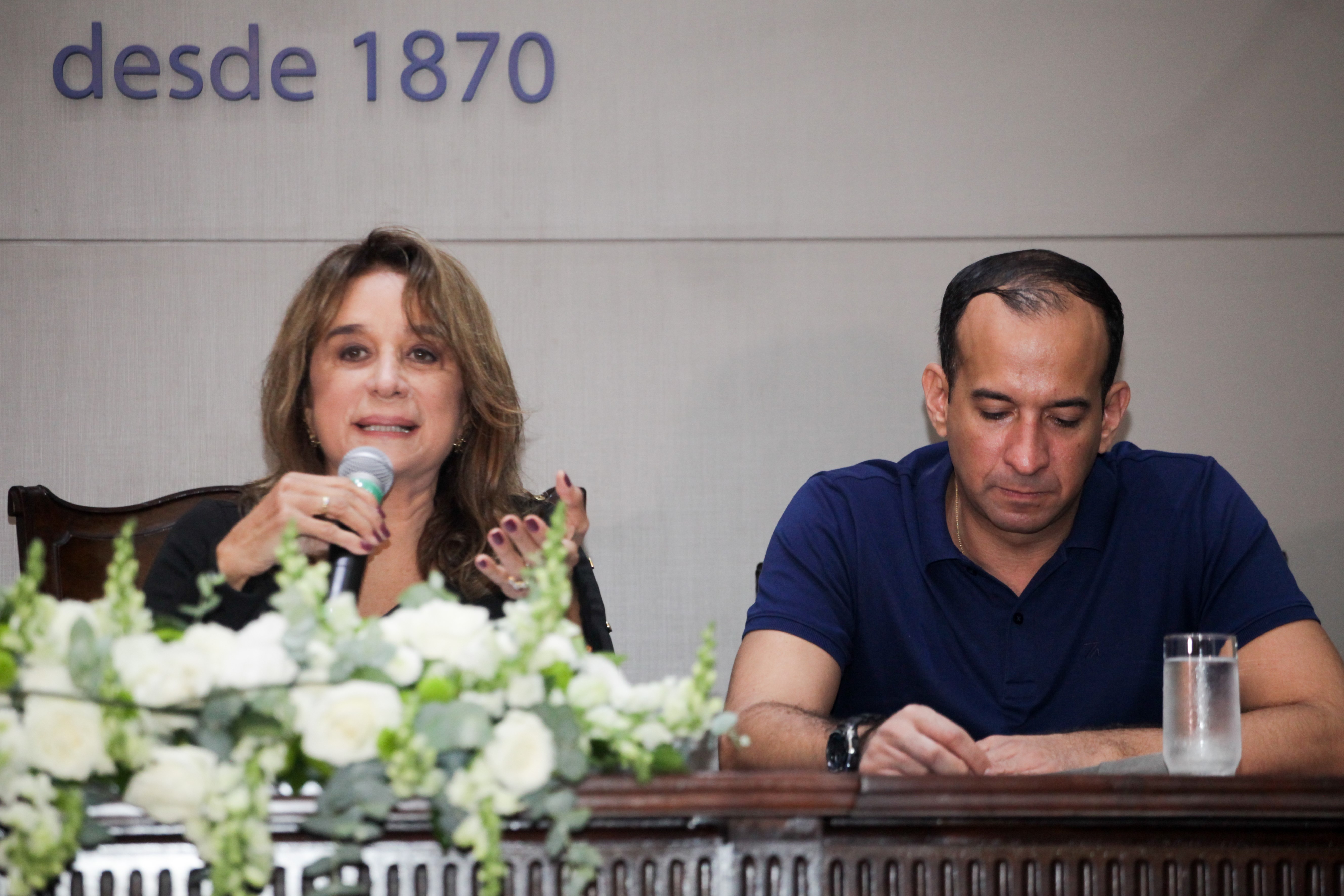 Marcela com o ator Ariel Goldenberg, que foi mestre de cerimônias do Encontro