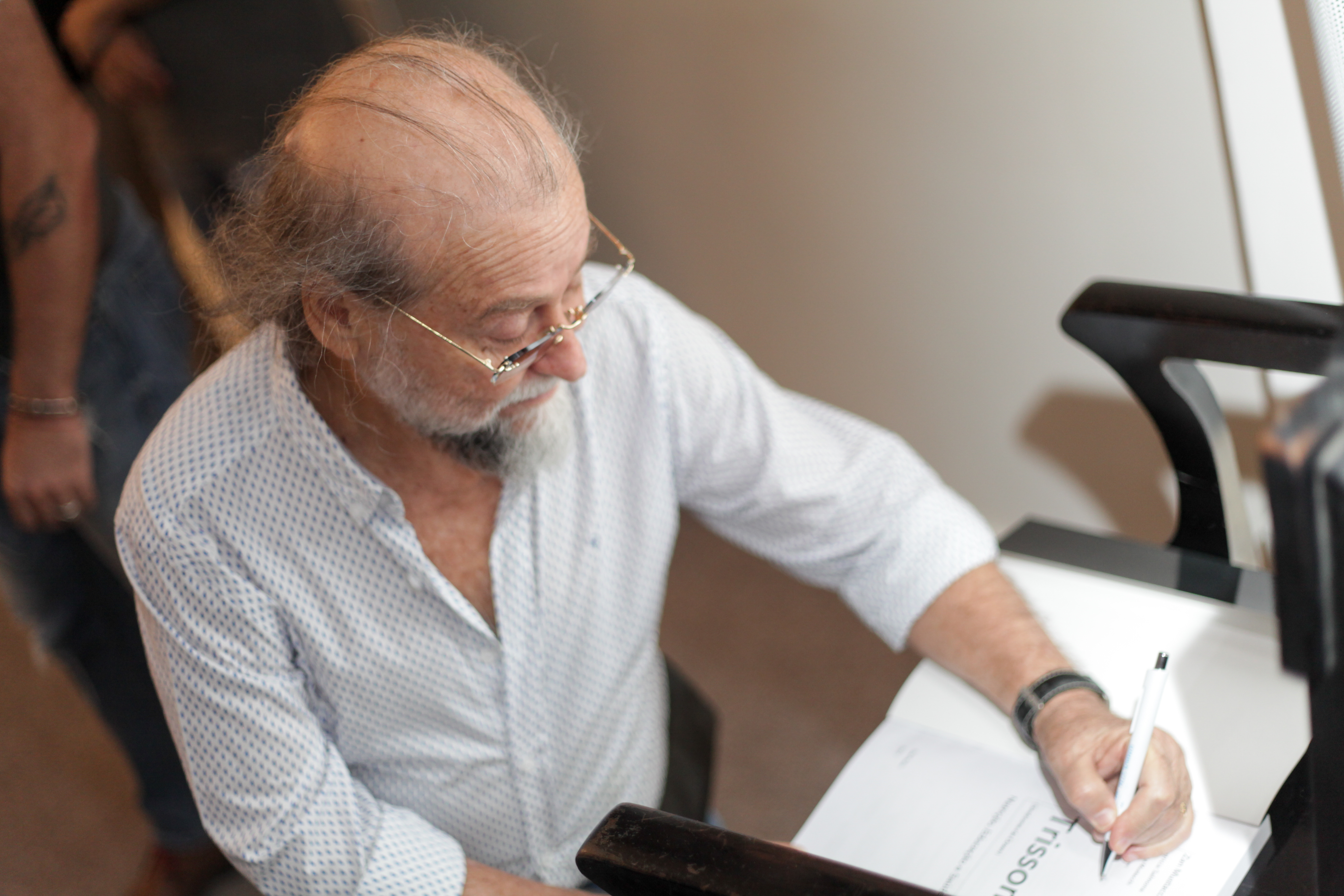Dr. Zan Mustacchi autografando seu livro que estava à venda pelo Empório Viver Bem