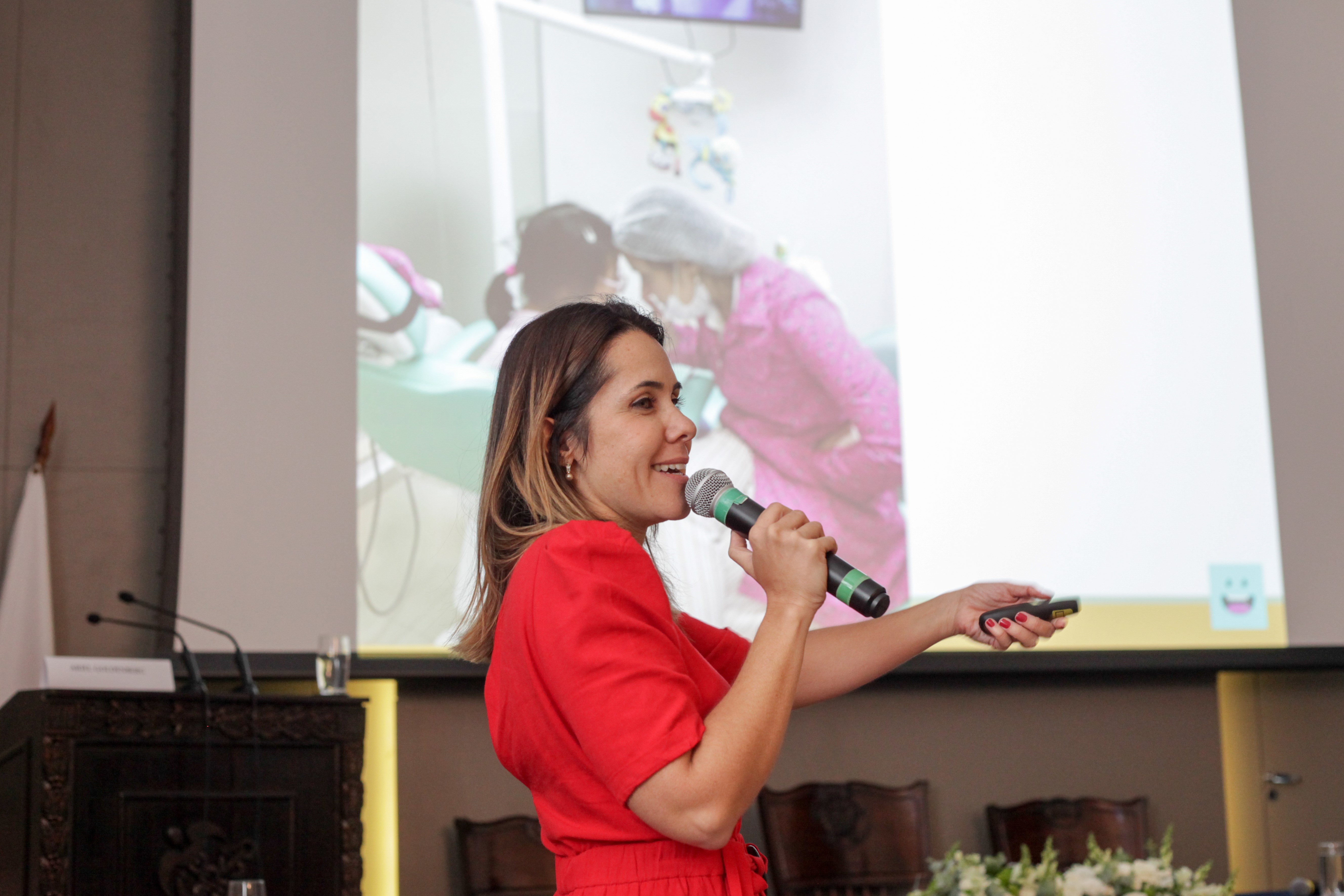 Em seguida tivemos o privilégio de aprender com a Dra. Fabiane Bittar que é ortodontista, mestre e pesquisadora pela UNIFESP, especialista em síndrome de Down pelo CEPEC/SP e professora da Unisanta na disciplina de odontologia para pacientes especiais. A Dra. Fabiane é proprietária da clínica Sorrisinhos em São Paulo, que possui um atendimento odontológico especializado para pessoas com síndrome de Down, em especial as crianças. E por tudo isso a palestra dela versou sobre “A inclusão pela abordagem odontológica na síndrome de Down”. Ela realiza um trabalho inédito em São Paulo, no Brasil e é uma das poucas ortodontistas no mundo com essa especialização.