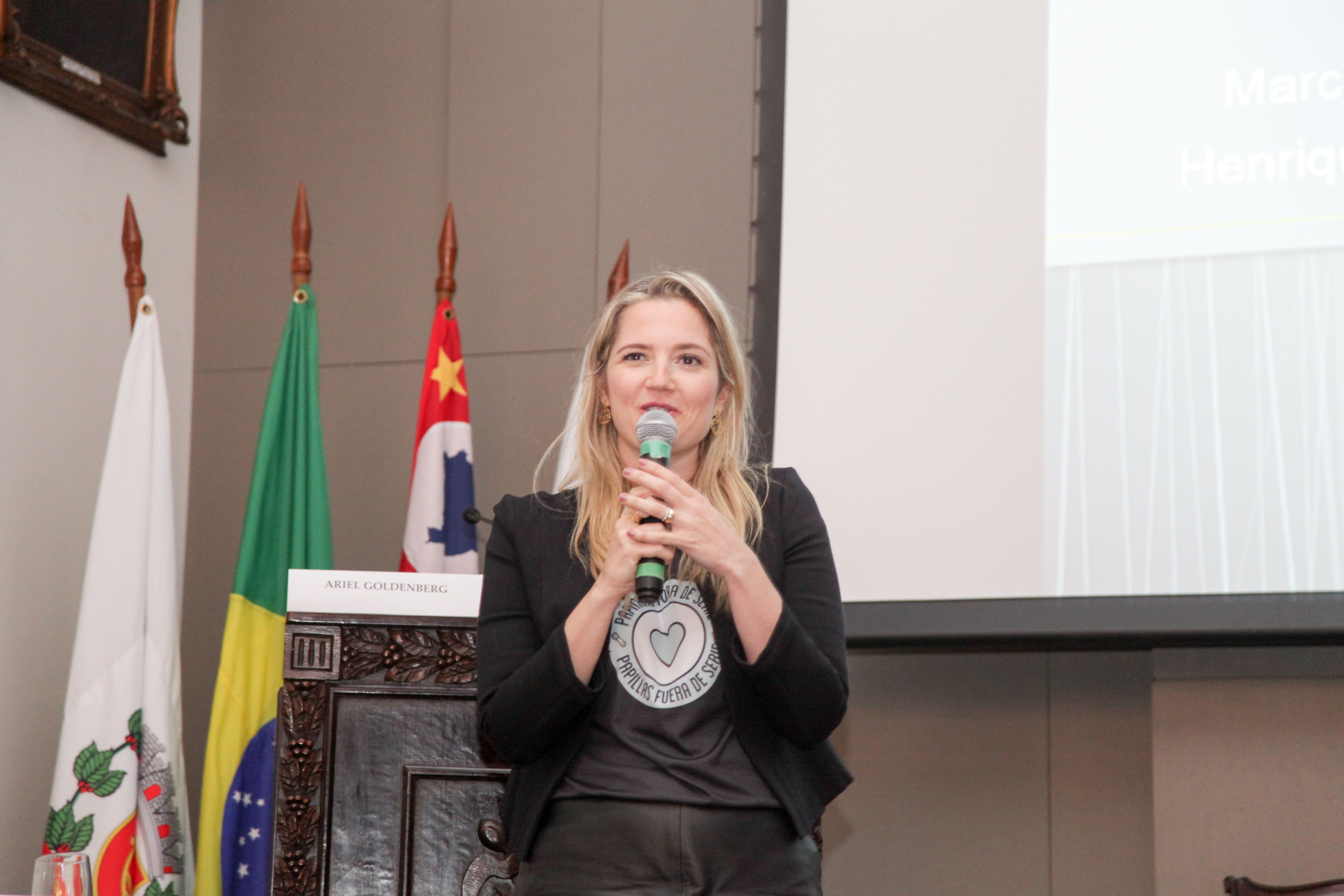 A nossa terceira palestrante do dia foi a Marcela Garcia Fonseca (eu mesma!). Essa advogada, mestre em direito internacional e doutora em relações internacionais pelo Instituto de Relações Internacionais da USP, não é médica e tampouco nutricionista, e hoje em dia se