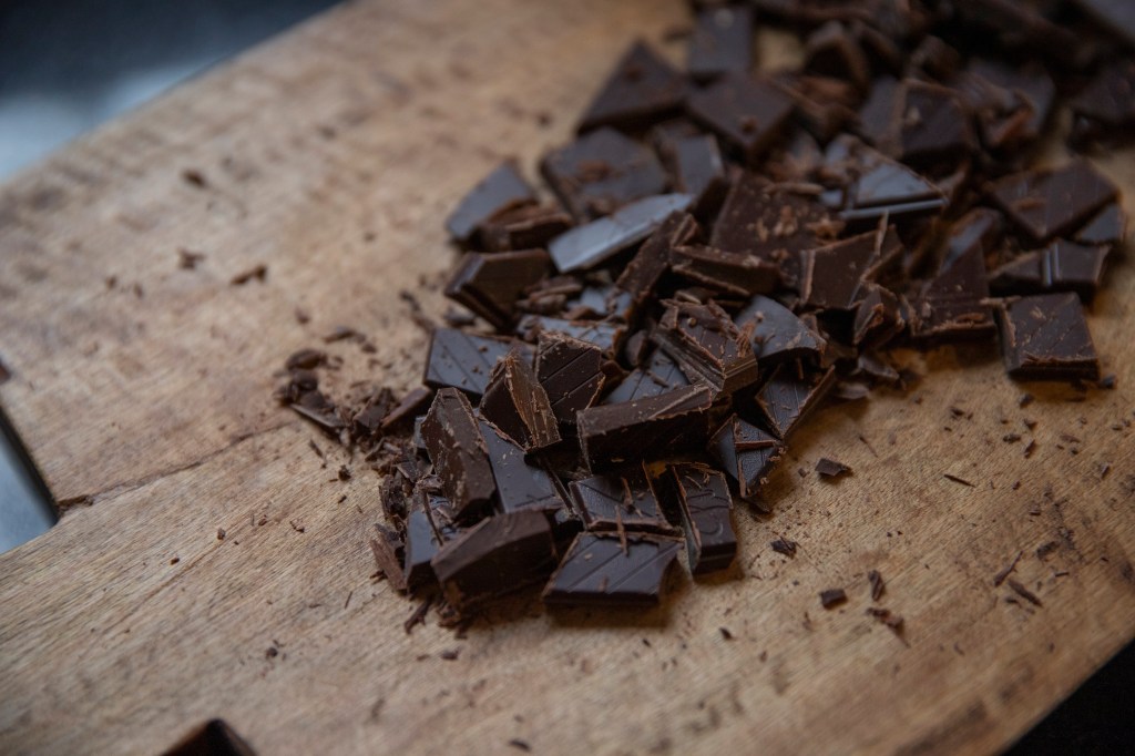 – 150g de chocolate amargo em pedaços pequenos (é uma barra – também podem ser pingos de chocolate)