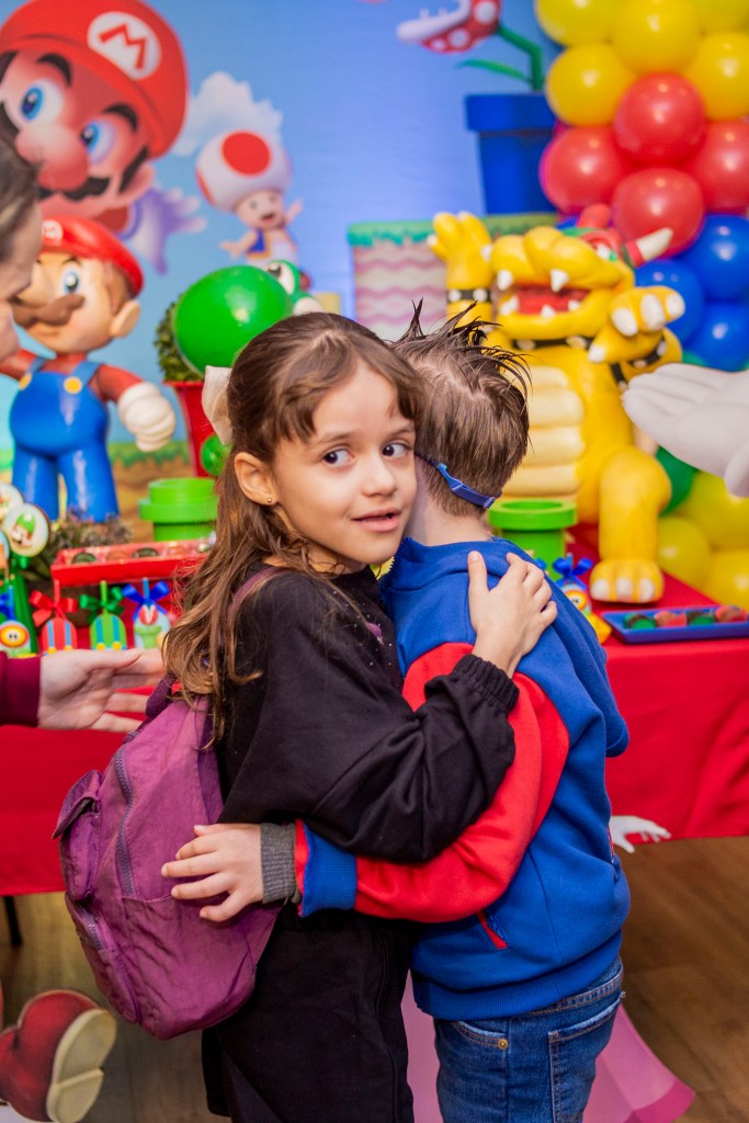 Sabemos que os ambientes de aniversários são muito barulhentos e extremamente iluminados, o que pode causar muito desconforto especialmente para pessoas que têm o transtorno do espectro autista (TEA). Então uma medida foi pedir que o buffet não utilizasse o microfone na hora do parabéns.